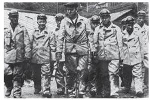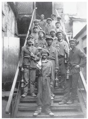 Молоді гірники-ізотівці з інструкторами виходять із вибою. Донецька обл. 1933 р.