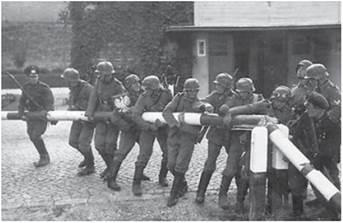 Німецькі солдати ламають шлагбаум на німецько-польському кордоні. 1 вересня 1939 р.
