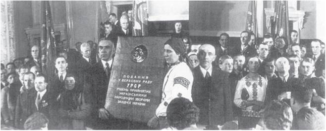 У жовтні 1939 р. були проведені вибори до Народних зборів Західної України. Вони проголосили встановлення в краї радянської влади і звернулися до Верховної Ради СРСР із проханням включити землі Західної України до складу УРСР. Було затверджено також декларацію про конфіскацію поміщицьких земель, націоналізацію банків і великої промисловості. У листопаді відбулися позачергові сесії Верховної Ради СРСР і Верховної Ради УРСР, які розглянули й задовольнили клопотання Народних зборів Західної України.