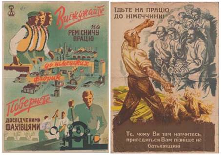 Після провалу бліцкригу в Німеччині виник гострий брак робочих рук через постійні мобілізації. Вихід було знайдено у використанні примусової праці населення окупованих країн. На початку 1942 р. серед населення України розгорнули агітацію про виїзд на роботу до Німеччини. Наголошувалося на добрих умовах праці й хорошій платні. Під час перебування остарбайтерів у Німеччині окупаційна адміністрація обіцяла дбати про їхні родини. Безробіття, голод, спокусливі обіцянки змусили в січні — лютому кілька тисяч добровольців виїхати до Німеччини. Проте дуже швидко звідти почали надходити розпачливі листи про жахливі умови життя заробітчан. Охочих виїхати не було, але в березні надійшло розпорядження про вивезення на роботи до Німеччини 527 тис. робітників, у вересні — ще 500 тис. українок у віці 15-35 років для роботи в домашньому господарстві. Почалося насильницьке вивезення молоді. На майбутніх остарбайтерів влаштовували облави, брали в заручники рідних, спалювали будинки тих, хто тікав. За роки окупації з території України було вивезено 2 млн 400 тис. осіб, що становило 48 % від усіх примусово вивезених на Захід із території СРСР.