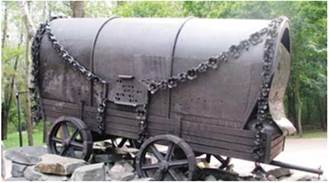 Пам’ятник «Ромська Кибитка» — скульптурна композиція, яка увічнює пам'ять про жертви геноциду ромів під час Другої світової війни. Київ. Бабин Яр. 2016 р. Сучасне фото