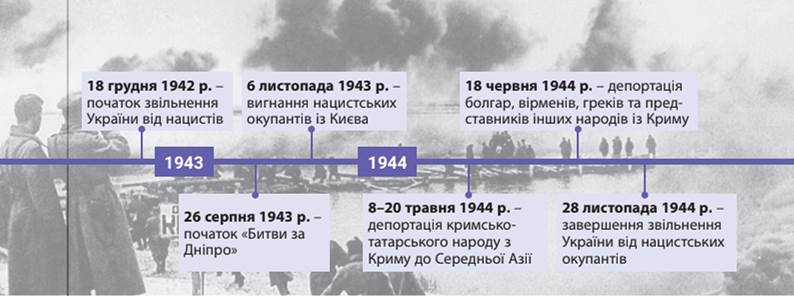 На підставі тексту параграфа і карти складіть хронологічну таблицю «Вигнання з України нацистських окупантів».