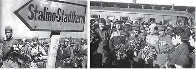 Вигнання нацистських окупантів супроводжувалося відвертою грою Кремля на українських патріотичних почуттях. У радянських газетах і радіопрограмах дедалі частіше почали вживати фразу «національна суверенна українська держава у формі Української РСР». У жовтні 1943 р. було засновано орден Богдана Хмельницького. Військові підрозділи, які вели бої в Україні, отримали назву Першого, Другого, Третього та Четвертого Українських фронтів. Але влітку 1944 р., коли долю німецького окупаційного режиму на українських землях було вже вирішено, Сталін зупинив загравання з українцями.