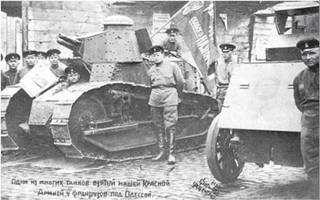 Танки, що були на озброєнні військ Антанти. Напис на фото: «Один із багатьох танків, захоплених нашою Червоною армією у французів під Одесою»