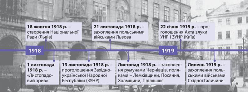 1. Установіть хронологічну послідовність подій: • захоплення Східної Галичини польськими військами • проголошення Західноукраїнської Народної Республіки • проголошення Акта злуки УНР і ЗУНР.