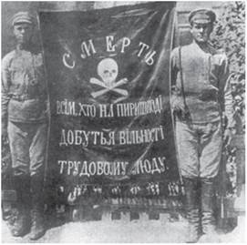 Зі статті голови ВУЧК М. Лациса:«У зв'язку з авантюрою отамана Григор'єва Рада оборони оголосила червоний терор стосовно лівих соціалістів-революціонерів-активістів і "незалежників"-активістів... Хто не з нами, той проти нас... Ми вдаримо по ворогу... ми повинні розстрілювати на місці кожного, хто взяв або збирається взяти проти нас зброю. Нам це диктує здоровий глузд, наш інстинкт самозбереження. Червоний терор необхідний. Це змушена дія до самозахисту».