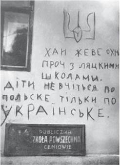 Напис на стіні школи в с. Ценів Тернопільської обл. Вересень 1933 р.