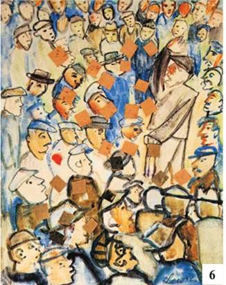 Установіть відповідність між художніми роботами (позначені цифрами) та їхніми авторами й назвами (позначені буквами). Пригадайте, у яких стилях і напрямках творили митці й мисткині 20-30-х років. Як ці тенденції мистецтва відобразилися у поданих роботах?