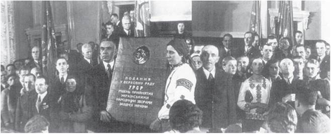 У жовтні 1939 р. були проведені вибори до Народних зборів Західної України. Вони проголосили встановлення в краї радянської влади і звернулися до Верховної Ради СРСР із проханням включити землі Західної України до складу УРСР. Було затверджено також декларацію про конфіскацію поміщицьких земель, націоналізацію банків і великої промисловості. У листопаді відбулися позачергові сесії Верховної Ради СРСР і Верховної Ради УРСР. які розглянули й задовольнили клопотання Народних зборів Західної України.