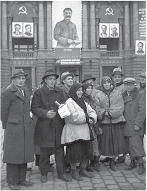Прокоментуйте фотографії. • 1. Що вражає на знімках? Які деталі вказують на пропагандистський характер цих документів? • 2. З якою метою створено ці фотографії? Яке ставлення до події прагнули сформувати у глядачів? • 3. Якою, на вашу думку, є мета заходу? Навіщо влада залучала відомих українців, зокрема О. Довженка, до таких акцій?
