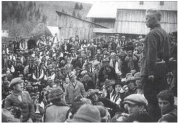О. Довженко промовляє на передвиборних зборах в одному з гуцульських сіл. 1939 р.