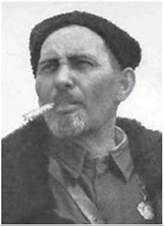 С. Ковпак (сидить ліворуч) зачитує партизанам шифровку з Великої землі. Комісар загону С. Руднєв (праворуч). 1942 р.