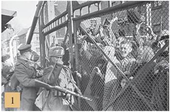 1. Радянські солдати відчиняють браму одного з таборів Аушвіцу. Січень 1945 р.