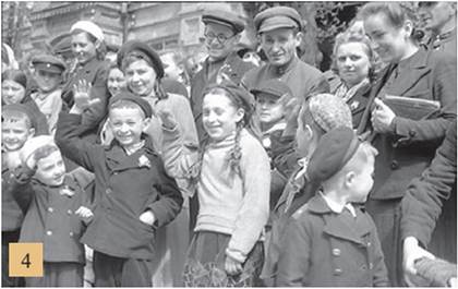3. Діти фронтовиків слухають повідомлення про перемогу над нацистською Німеччиною