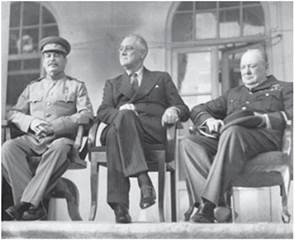 Учасники Кримської конференції. І. Сталін, Ф.-Д. Рузвельт, В. Черчилль. Ялта. 1945 р.
