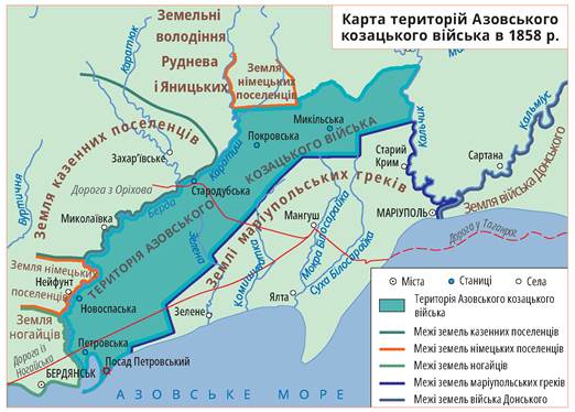 На початку 1860-х років більшість азовських козаків уряд поселив у кубанських станицях. Та у 1864 р. було затверджено указ про скасування Азовського козацького війська. У результаті офіцери отримали дворянство із земельним наділом, а козаків перевели в державні селяни.