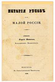 Палітурка першого видання «Історії Русів». 1846