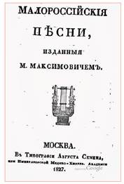 Палітурка першого видання «Малоросійських пісень» М. Максимовича. 1827