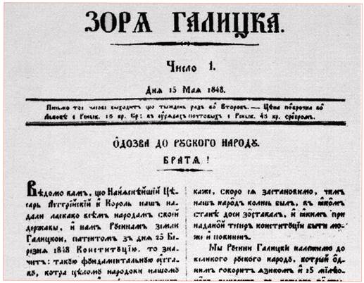 Головна Руська (Українська) Рада взяла на себе роль представника українського населення Галичини перед центральним урядом протягом 1848-1851 рр. Вона складалася із 30 постійних учасників — представників світської інтелігенції, вищого і нижчого духовенства, очолив її єпископ Григорій Яхимович. У першому номері друкованого органу Головної Руської Ради газети «Зоря Галицька» за 15 травня 1848 р. містилася відозва до галицьких русинів.
