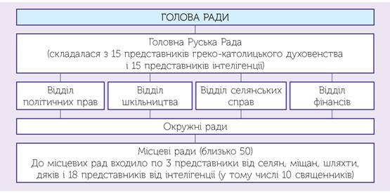 • Як було побудовано Головну Руську Раду та створені нею органи?