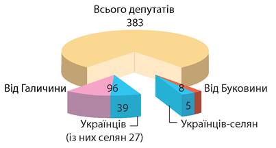 • Працюючи з текстом, поміркуйте, яким було представництво українців у парламенті. Які питання вони намагалися вирішувати?