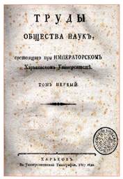 Палітурка збірника «Праці Товариства наук». Харків. 1817