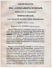Перша сторінка «Маніфесту від 19 лютого 1861 р.»