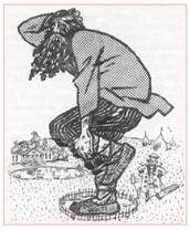 Селянин на одній нозі. Карикатура на селянську реформу 1861 р. з журналу «Новий сатирикон». 1861 р.