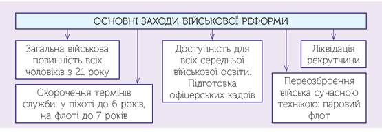 Протягом 1862-1874 рр. тривала військова реформа, оскільки після поразки в Кримській війні імперська армія потребувала модернізації.