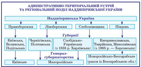 • Який адміністративно-територіальний устрій був у Наддніпрянщині на початку XIX ст.?