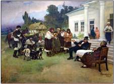 Кріпаків міняють на собак. Картина І. Їжакевича. 1952 р.