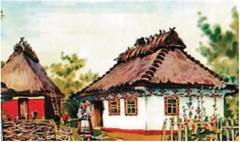 Оскільки більшість населення українських земель на початку XIX ст. становили селяни, серед поселень українських земель значно переважали за кількістю села. Народне житло — сільська хат — хоч і мало однакову структуру (світлиця, сіни, комора), в кожному регіоні відзначалося певними особливостями. Найбільше на вигляд хати впливали будівельні матеріали, поширені в регіоні, — дерево чи глина, і заможність та чисельність родини.