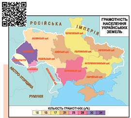 • Що впливало на зазначений на карті розподіл грамотності населення?