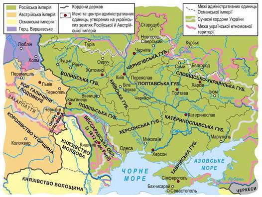Наприкінці XVIII століття внаслідок трьох поділів Польщі, російсько-османських війн, ліквідації Слобідських полків, Гетьманщини й Запорозької Січі українські землі потрапили до складу Російської й Австрійської імперій. В історії України розпочалась імперська доба, яка тривала з кінця XVIII століття до 1917 року.