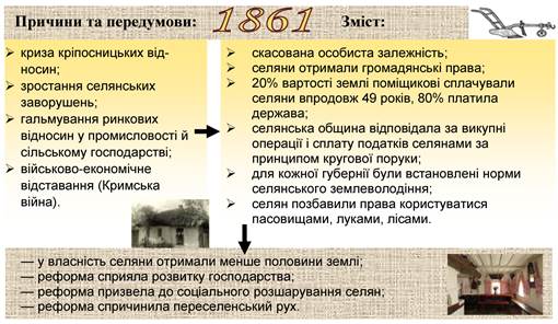 - 1. До яких соціальних змін на селі привела реформа 1861 року?
