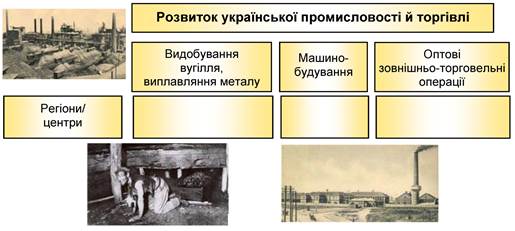 4. На основі наведеної нижче схеми підготуйте розповідь про розвиток української промисловості й торгівлі
