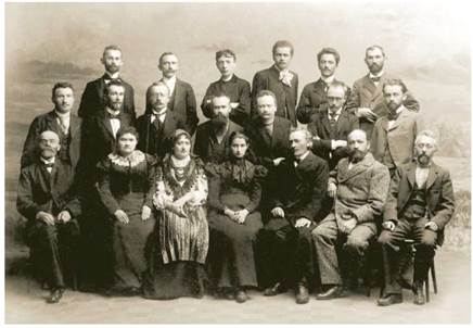 1-й (нижній) ряд: Михайло Павлик, Євгенія Ярошинська, Наталя Кобринська, Ольга Кобилянська, Сильвестр Лепкий, Андрій Чайковський, Кость Паньківський.