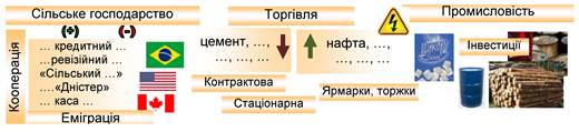 4. Назвіть схему та доповніть її. Використовуючи схему, підготуйте розповідь «Економічний розвиток західноукраїнських земель на початку XX століття».