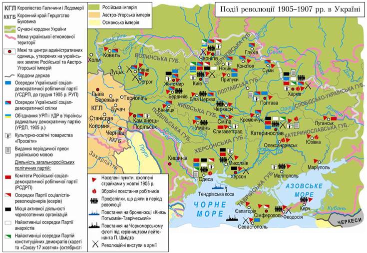 - 1. Підготуйтеся за допомогою карти розповідати про події революції 1905-1907 рр. в Україні.