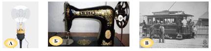 4. На світлинах А, Б та В зображено винаходи XIX століття. Назвіть ці винаходи. Поміркуйте, наскільки здобутки науково-технічної революції змінили життя українців.