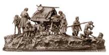 4. На ілюстрації — скульптурна група Леоніда Позена «Переселенці». Якому суспільному явищеві присвячена композиція? Що змушувало українців залишати рідну домівку? Куди переселялися українці Наддніпрянщини і Західної України в пошуках кращої долі?