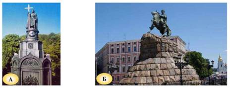 4. На світлинах А та Б зображені зразки монументальної скульптури XIX століття. Яким історичним особистостям присвячено пам’ятники? З якими подіями пов’язані ці особистості? Чи мали відлуння у XIX ст. події минувшини, пов’язані з ними?