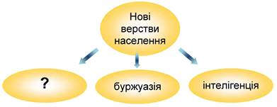 1. Яке поняття пропущено у схемі? Стисло охарактеризуйте, як сформувалися нові верстви населення.