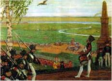 У військовому поселенні (художник — Мстислав Добужинський, XX ст.)