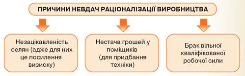 Розширюючи виробництво, великі землевласники виявляли цікавість до технічного вдосконалення (раціоналізації) господарств, зверталися до практики передових вітчизняних та іноземних сільських виробників, знайомилися з досягненнями агрономії та агротехніки, намагалися використовувати сільгоспмашини. Проте раціоналізаторські експерименти здебільшого закінчувалися невдачею. На перешкоді раціоналізації стояла кріпосницька система.