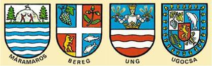 Розгляньте герби українських комітатів, що входили до складу Угорського королівства, як історичні джерела. Визначте, які історичні й господарські особливості краю у них відображені.