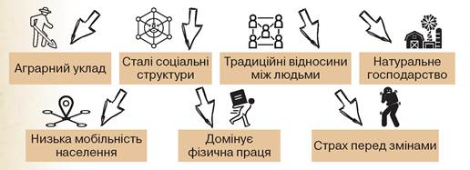 Розгляньте схему. Подумайте, чому в першій половині XIX ст. українське суспільство залишалося традиційним.