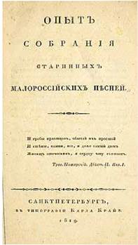 «Опыт собрания старинных малоросийских песен» М. Цертелєв