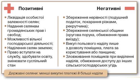 - 3. Висловіть припущення, чи всі селяни зможуть скористатися реформою одразу.