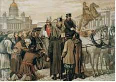 Читання маніфесту 1861 Олександром II на Смольній площі в Санкт-Петербурзі (художник — Олексій Ківшенко, 1880 р.)